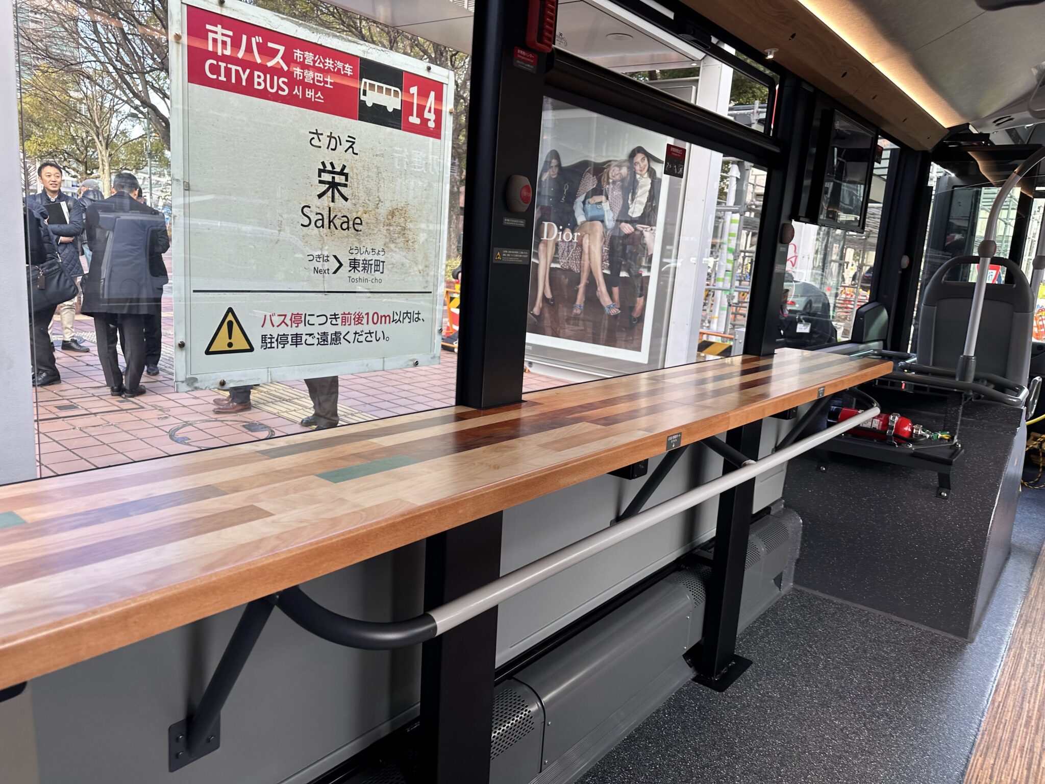 車内も“都心を楽しむ”雰囲気に。まちの景色を眺めながら過ごせるような空間づくりが特徴的です。