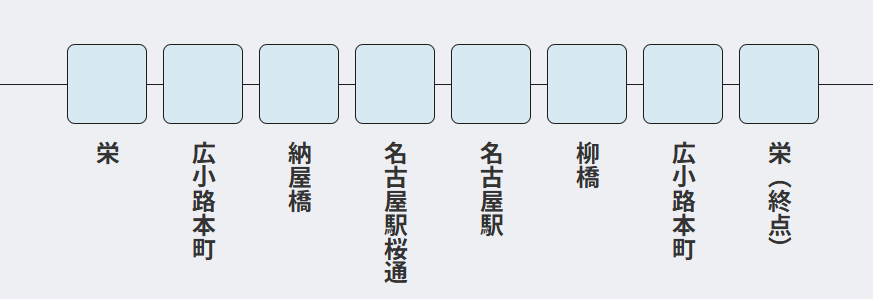名古屋駅ー栄ルートの走行ルートと停車箇所