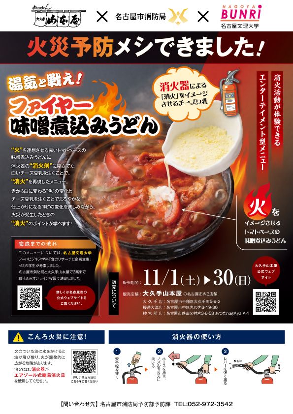 名古屋文理大学フードビジネス学科の学生が考案した、消火活動が体験できるエンターテインメント型メニュー!