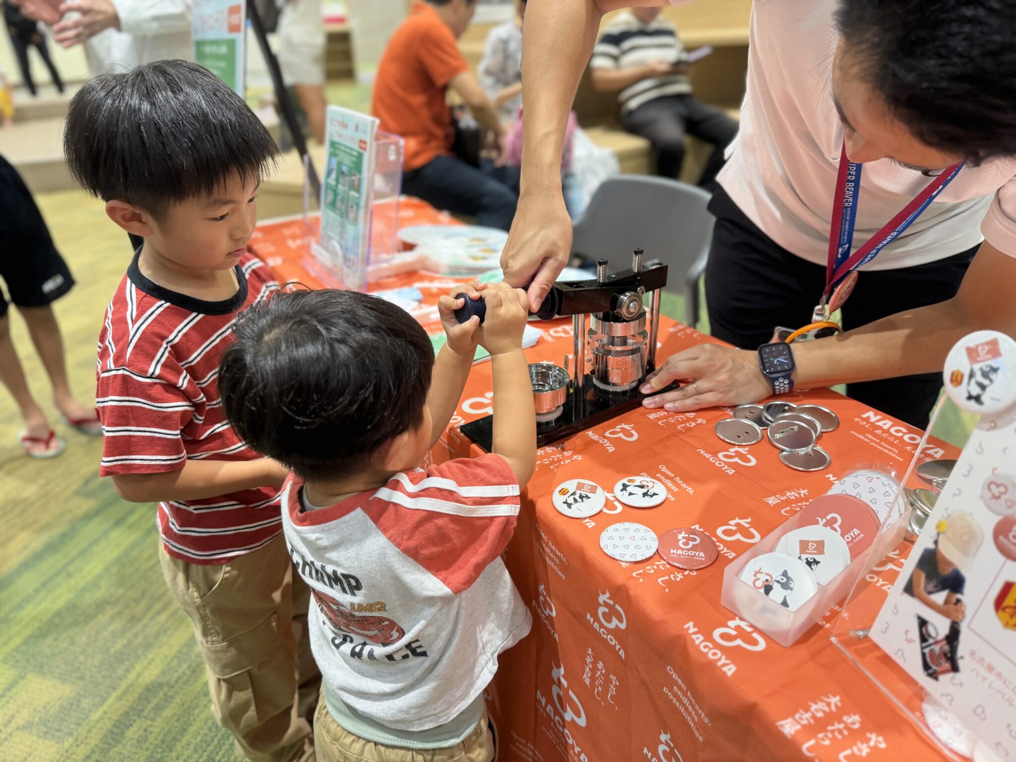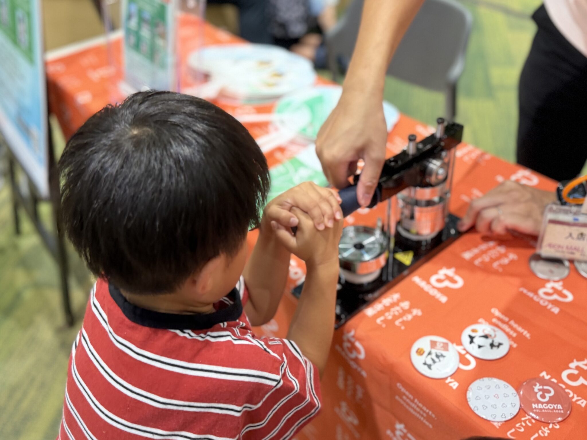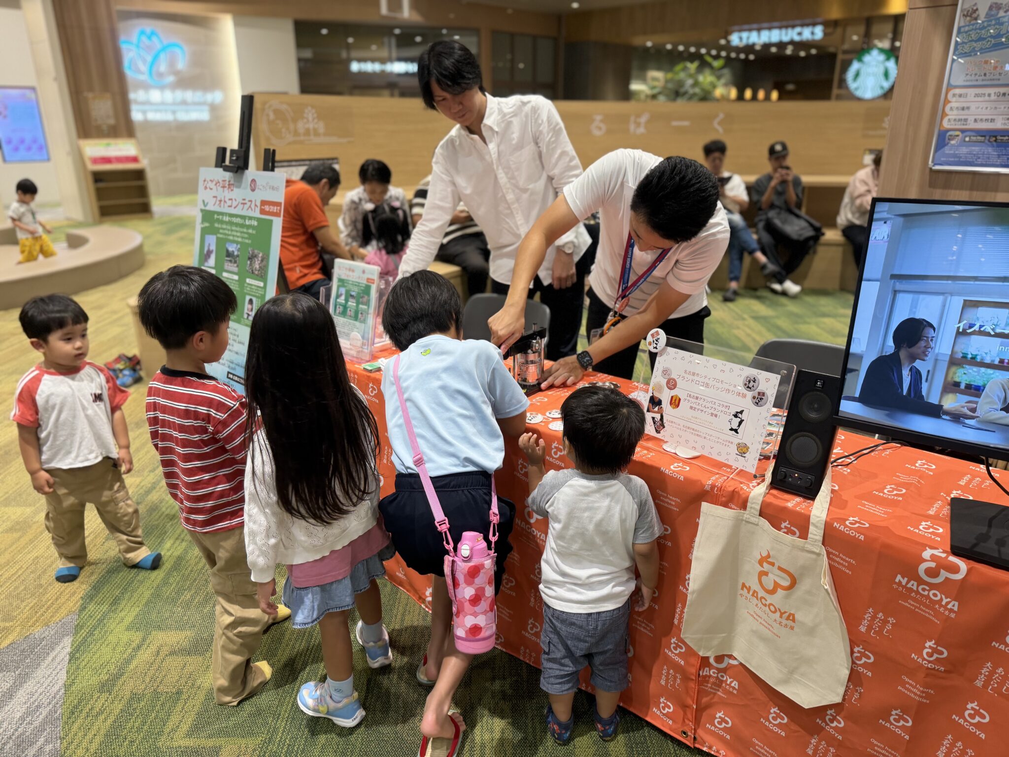 10月5日(日)にイオンモール熱田にてシティプロモーションのブースを出展し、ブランドロゴの缶バッジ作り体験を実施しました。