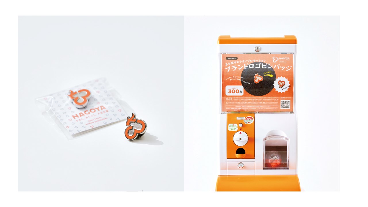 今回は、シティプロモーションのブランドパートナーである名古屋グランパスさまと作成した、名古屋グランパス公式マスコット「グランパスくん」と、ブランドロゴとがコラボしたデザインの缶バッジがはじめて登場しました。