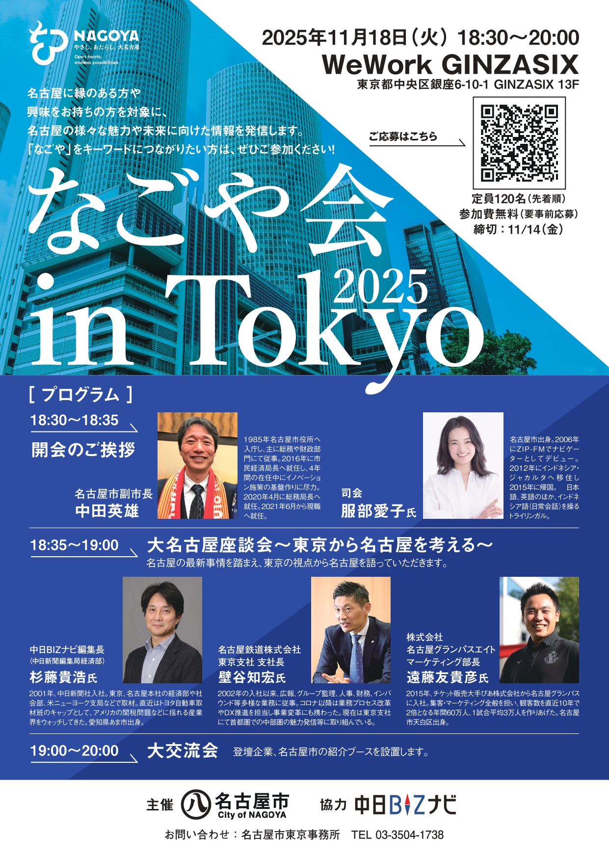 首都圏の名古屋に縁のある方や名古屋に興味をお持ちの方が知り合い、交流を深めるきっかけとなるイベントを開催します。