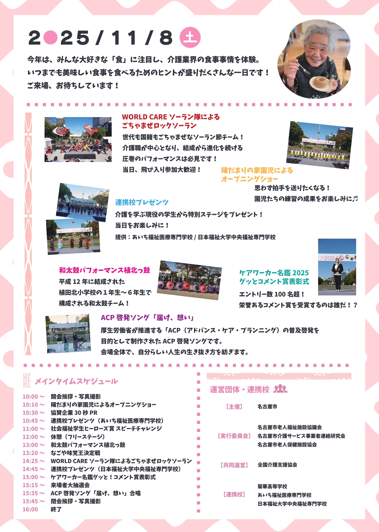 「介護の⽇(11⽉11⽇)」にちなんで、介護について理解を深めていただくとともに、介護の仕事の大切さ・やりがいを知っていただくためのイベントです。