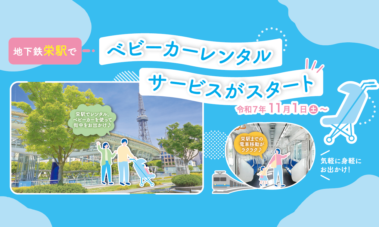 お子さま連れでの移動の利便性向上を目指し、地下鉄栄駅でベビーカーのレンタルサービスが始まりました!