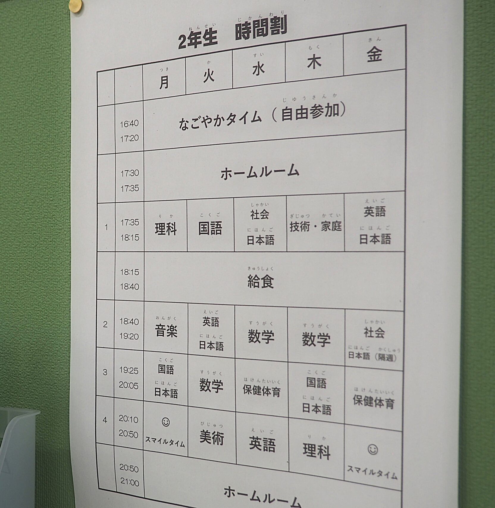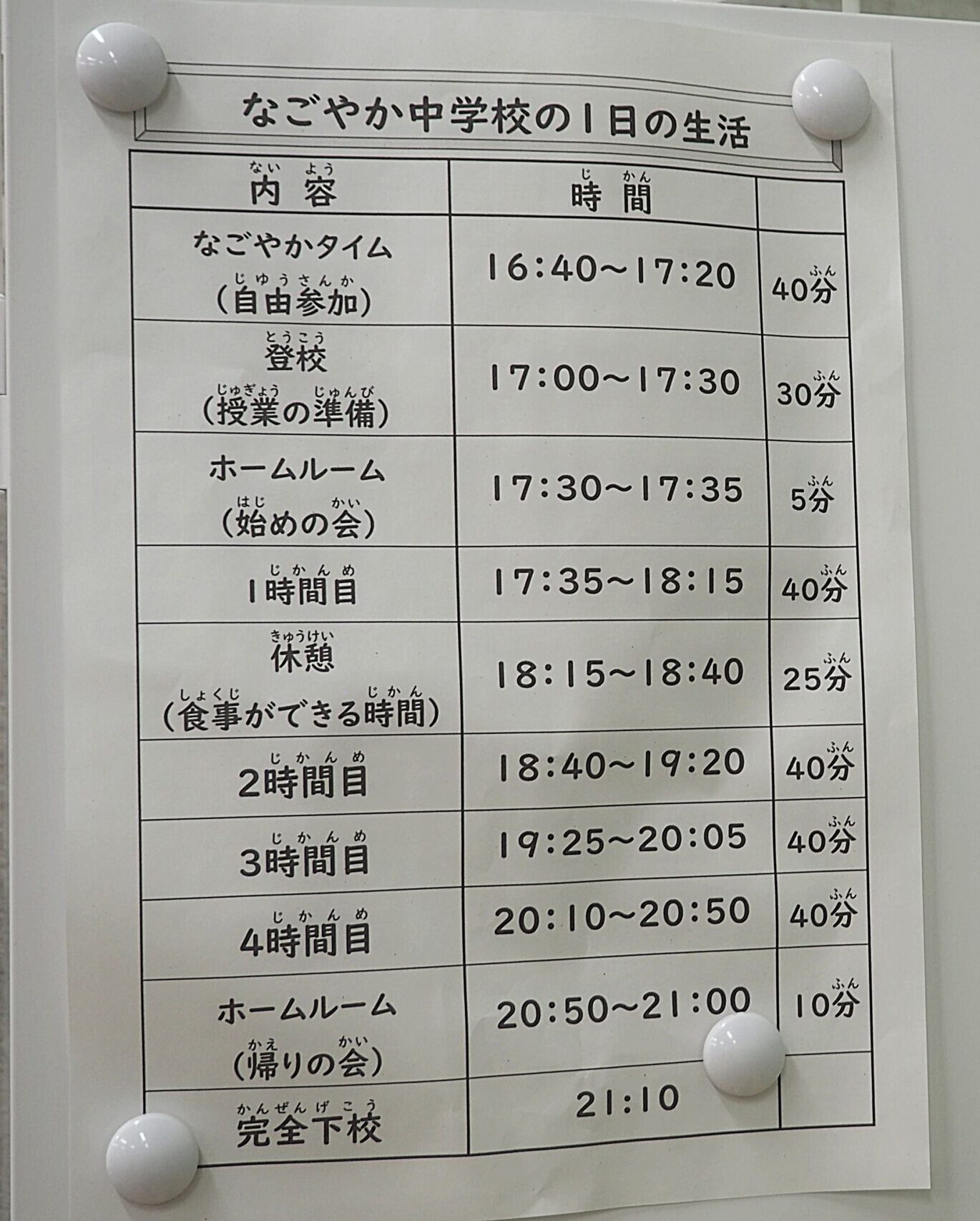2025年4月、名古屋市は夜間中学である名古屋市立なごやか中学校を笹島小学校・中学校内に設置しました。現在、月~金の週5日、17時30分~21時まで、40分×4コマの授業を行っています。途中に給食の時間もあります。