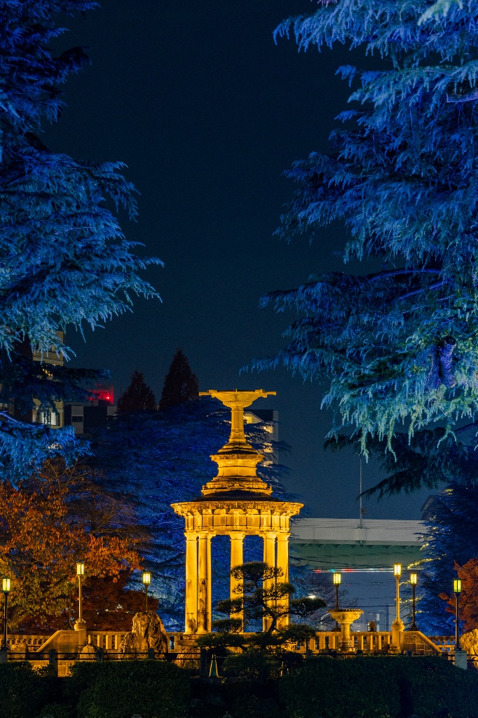 噴水塔はもちろん奏楽堂も建築物として素晴らしいです。さらに春、秋に咲くバラ園も美しく四季を通して楽しめる公園です。