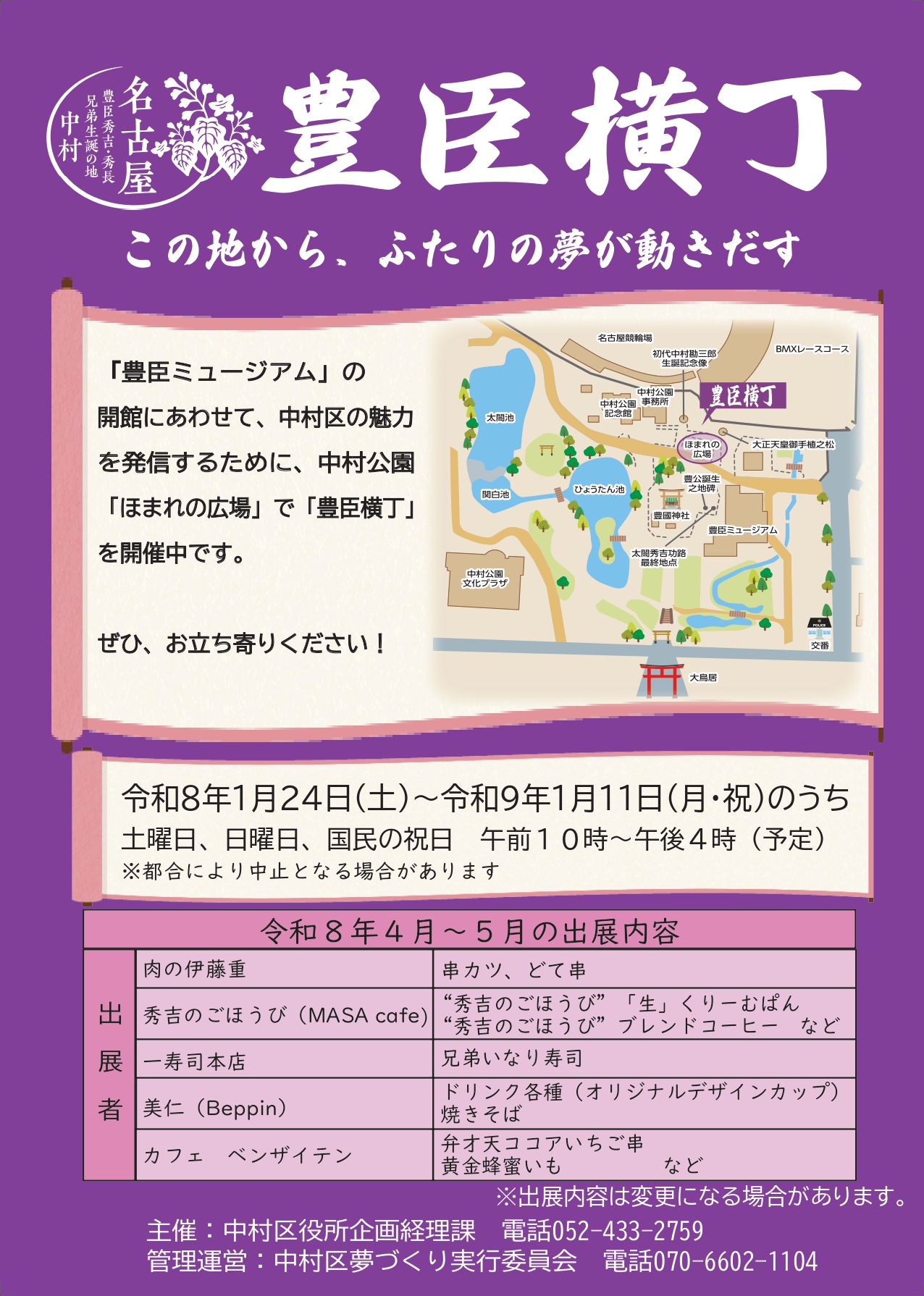 「豊臣ミュージアム」を訪れた後は、中村区の魅力に触れられる「豊臣横丁」にぜひ、お越しください。